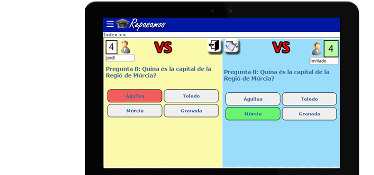 El modo duelo es perfecto para esto, porque jugáis en el mismo móvil o tableta. Contesta correctamente antes que tu oponente, pero no te precipites: si fallas, no podrás volver a probar hasta que el contrario lo haya hecho. Consigue acabar con más puntos que él.